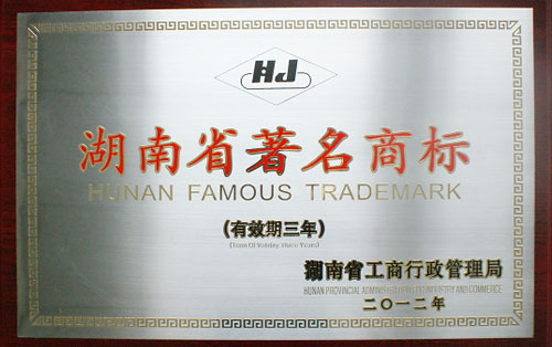 HJ商标榮(rong)獲湖南省著名(míng)商标