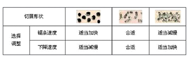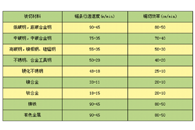 2.鋸削速(sù)度及鋸切效率(lü)建議參考表